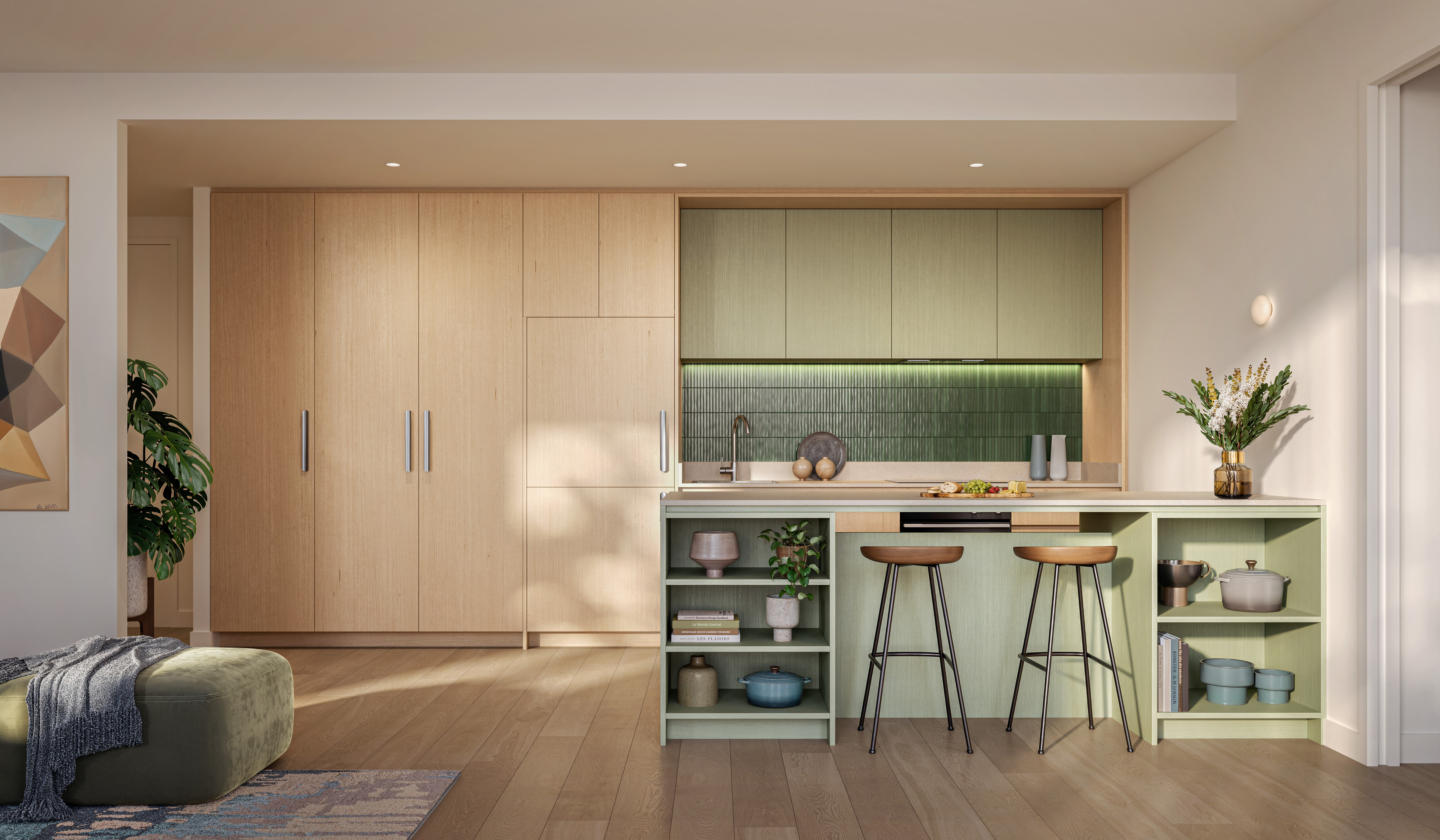 Working closely with Hayball and the consultant team, Scharp readily translated the design intent into high-end visuals. The CGI renders express built form, materiality and communal spaces, while the dynamic fly-through animations guide viewers through gardens and apartment interiors, helping buyers understand the lifestyle and spatial experience on offer.